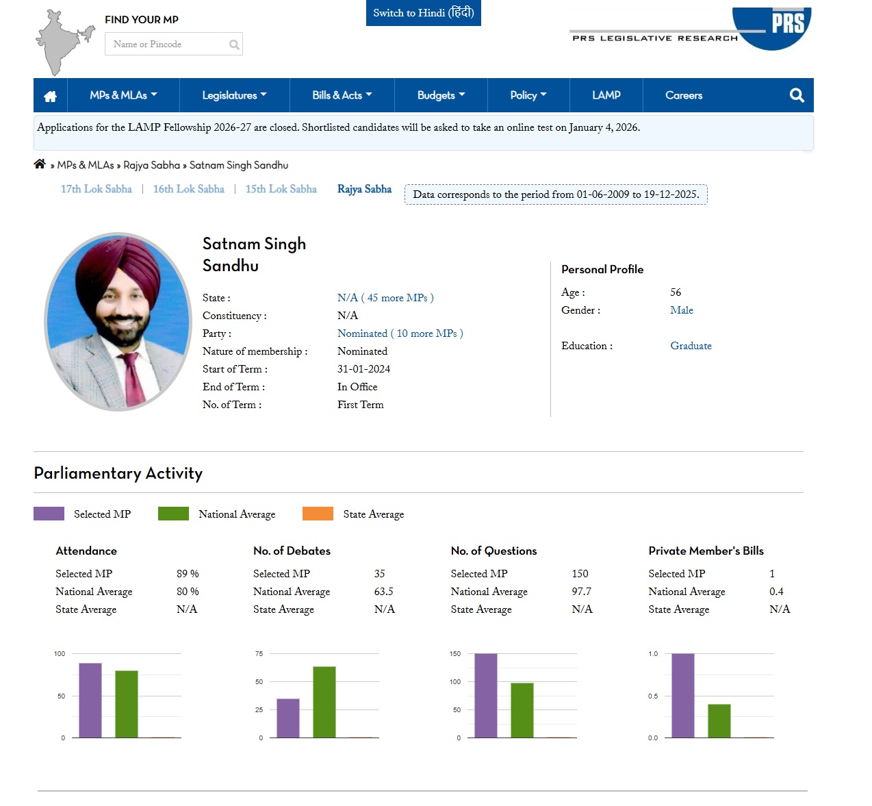 Q) MP Satnam Singh Sandhu: Will the Prime Minister be pleased to state: